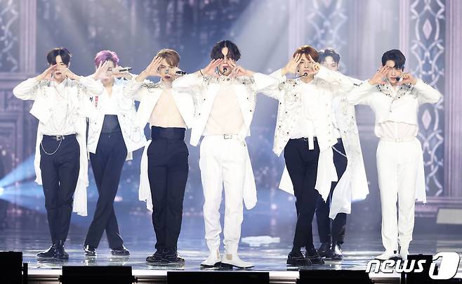 (서울=뉴스1) 권현진 기자 = 갓세븐(GOT7)이 10일 오후 경기도 고양시 일산 킨텍스에서 온택트로 진행된 '제35회 골든디스크 어워즈 with 큐라프록스' 디지털 음반 부문 부문 시상식에 참석해 화려한 공연을 선보이고 있다. (골든디스크어워즈 사무국 제공) 2021.1.10/뉴스1