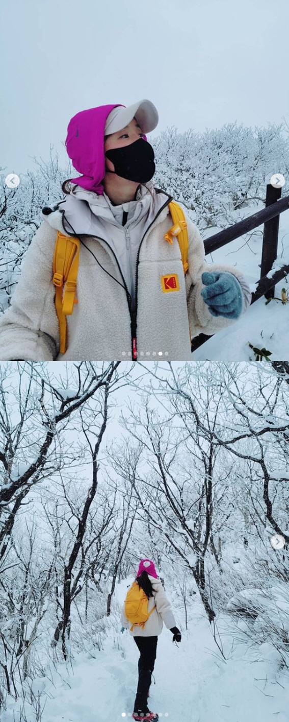 배우 이시영이 눈 덮인 덕유산 정복에 나섰다.