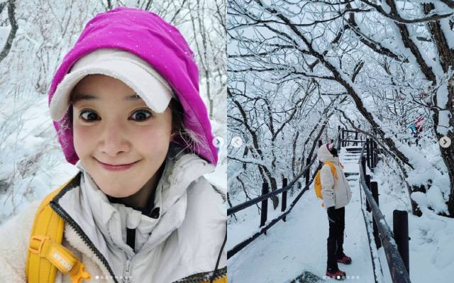 공개된 사진 속 이시영은 눈꽃이 아름답게 피어난 상고대를 만끽하며 산행하고 있는 모습. 영하의 추운 날씨에도 산행을 즐기며 완등에 성공한 모습이 감탄을 자아낸다.