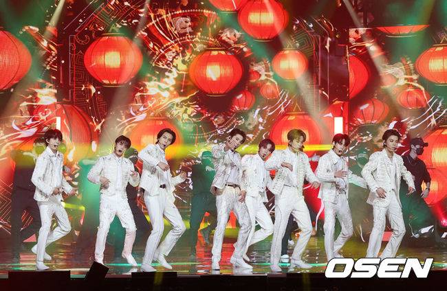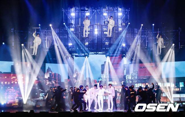 그룹 NCT127이 음반 본상, 아티스트상을 수상한 뒤 공연을 펼치고 있다.