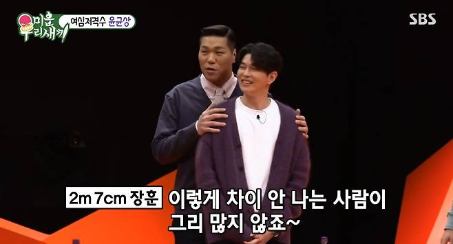 장신의 미남배우 윤균상의 등장에 모벤저스는 반색했다. 서장훈 역시 “나와 키 차이가 이렇게 안나는 사람이 흔치 않다”며 웃었다.