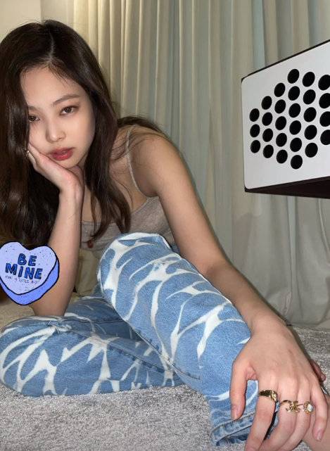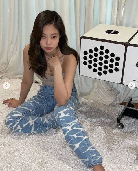 사진에는 제니가 바닥에 앉아 뇌쇄적인 표정으로 카메라를 응시하는 모습이 담겼다.