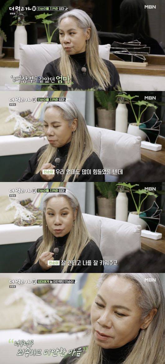 이날 인순이는 자신의 어린 시절, 어머니에 대한 이야기를 털어놨다. 인순이는 엄마에 대해서 묻자 "체구가 크지는 않으셨는데 굉장히 강한 분이었다. 여장부 같은 그런 분이라 마음 한 번 먹으면 밀고 나가는 스타일이었다"고 회상했다.