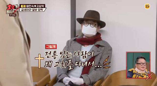 이에 최양락은 "전통있는 사람이 교회를 다니냐 목사님이 이제 나오지 말라더라"라고 윽발 질렀다.