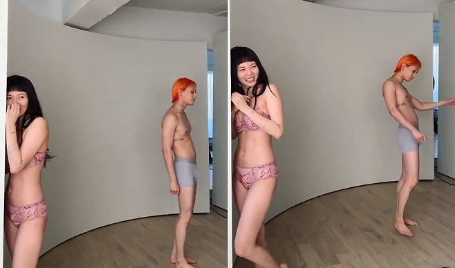 이 영상엔 화보 촬영에 나선 던 현아 커플의 모습이 담겼다. 이들은 속옷 화보를 촬영 중으로 능숙하게 포즈를 취하는 던의 뒤로 현아는 부끄럽다는 듯 얼굴을 감추는 것으로 웃음을 자아냈다.