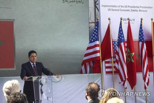 Nasser Bourita, Moroccan Foreign Minister, speaks during a press event in Dakhla, Morocco-administered Western Sahara, Sunday Jan. 10, 2021. The highest ranking U.S. diplomat for North Africa and the Middle East, as well as the first ever U.S Ambassador, traveled Sunday to the Morocco-administered Western Sahara city of Dakhla, laying the groundwork for the United States to set up a consulate in the disputed territory. (AP Photo/Noureddine Abakchou)