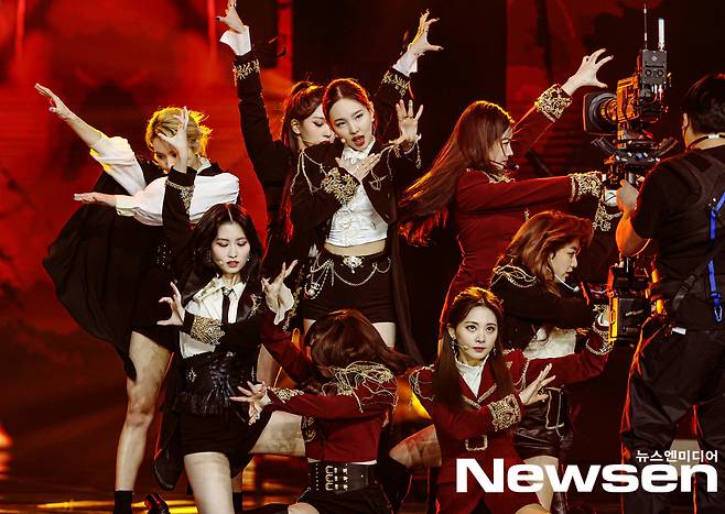 이날 음반 부문 시상식에 참석한 그룹 트와이스가 멋진 무대를 선보이고 있다.