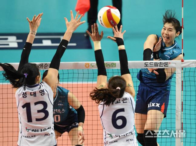 GS칼텍스 이소영이 10일 서울 장충체육관에서 진행된 한국도로공사와의 경기에서 강타로 공격하고있다. 2021.01.10. 김도훈기자 dica@sportsseoul.com