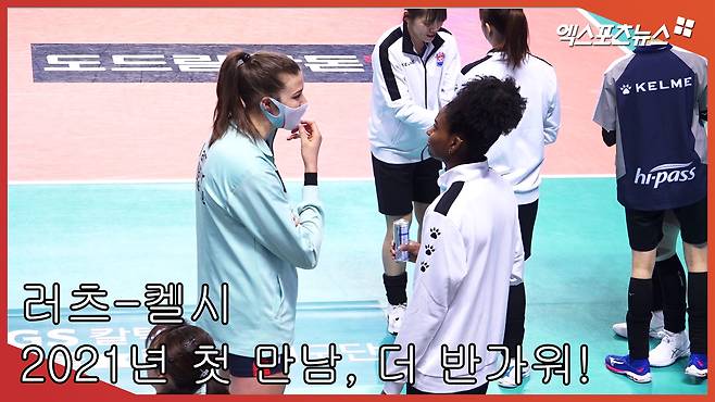 [엑스포츠뉴스 장충, 김한준 기자] 10일 오후 서울 중구 장충체육관에서 열린 ‘2020-2021 도드람 V리그’ GS칼텍스와 한국도로공사의 경기, 경기 전 GS칼텍스 러츠와 한국도로공사 켈시가 인사 나누는 모습을 영상으로 담아보았다.
