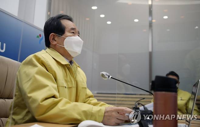 (서울=연합뉴스) 김승두 기자 = 정세균 국무총리가 11일 오전 서울시청에서 열린 신종 코로나바이러스 감염증(코로나19) 대응 중앙재난안전대책본부(중대본) 회의를 주재하고 있다. 2021.1.11