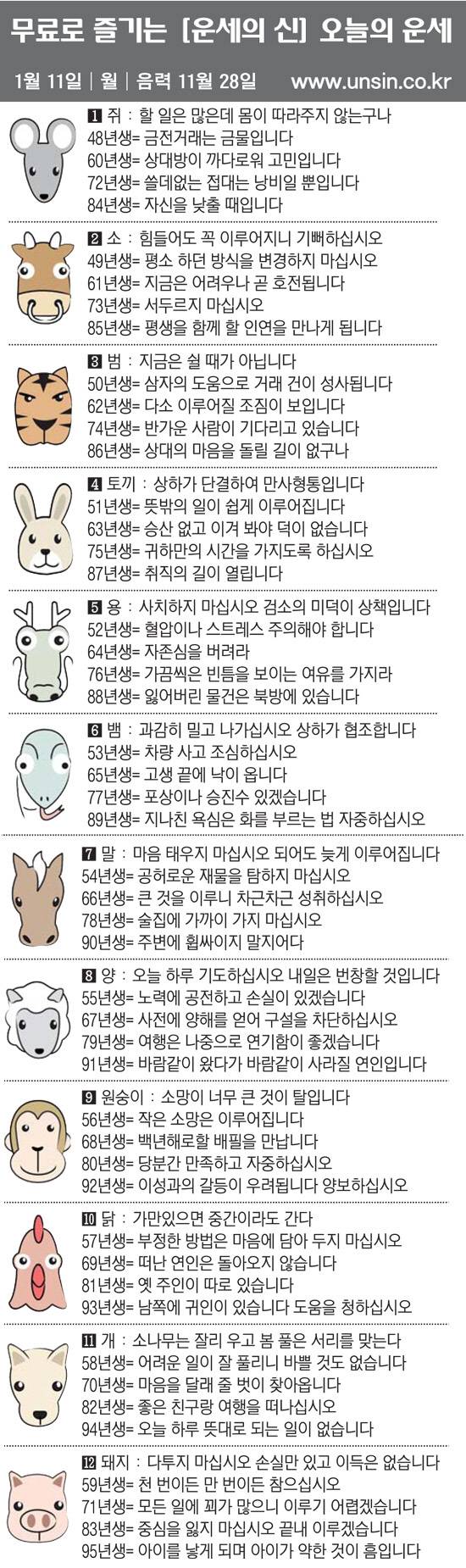 [직장인을 위한 오늘의 운세] 2021년 1월 11일 월요일(음력 11월 28일)