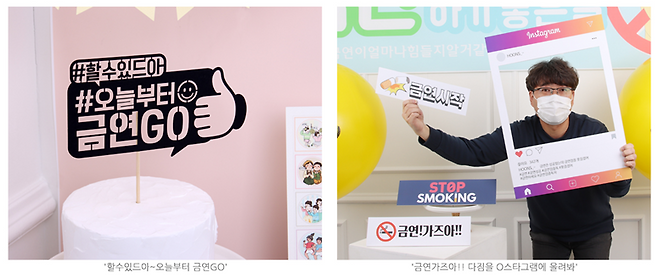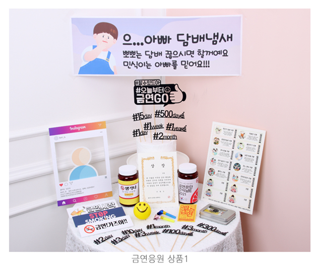 금연시작을 알리는 SNS에 올릴 수 있는 방법에서부터 힘들때 마다 응원쿠폰, 금연간식, 금연현수막, 금연부적, 금연성공 칭찬 상장까지' 와 같이 총 10여종의 금연응원도구로 구성되어 있다.