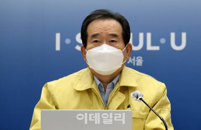 [이데일리 김태형 기자] 정세균 국무총리가 11일 오전 서울 중구 서울시청에서 열린 신종 코로나바이러스 감염증(코로나19) 대응 중앙재난안전대책본부 회의에서 발언을 하고 있다.