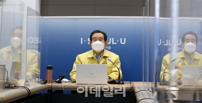 [이데일리 김태형 기자] 정세균 국무총리가 11일 오전 서울 중구 서울시청에서 열린 신종 코로나바이러스 감염증(코로나19) 대응 중앙재난안전대책본부 회의에 참석해 모두발언을 하고 있다.