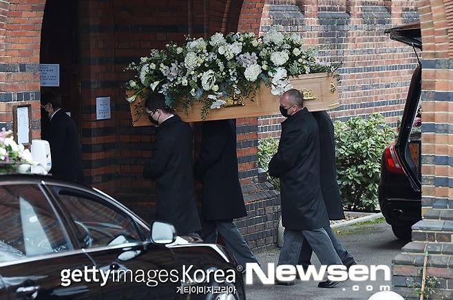 여배우 데임 바바라 윈저의 장례식이 2021년 1월 8일(현지시간) 영국 런던의 골더스 그린 화장터에서 엄수됐다.