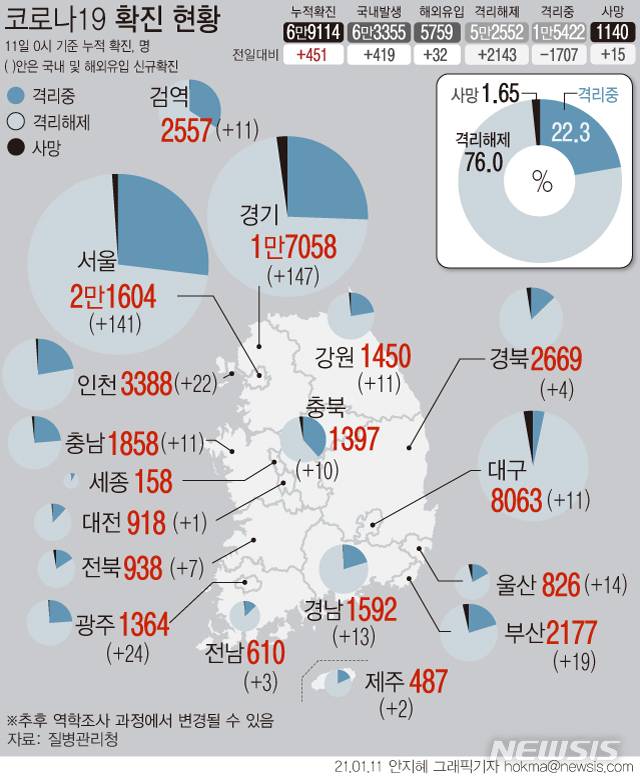 도 방역당국은 지난달보다는 확진 판정이 줄고 있지만, 폭설에 이은 한파로 검사 건수가 줄어든 것이 확진자 감소에 일부 영향을 미쳤을 개연성이 있다고 판단, 긴장을 늦추지 않고 있다.