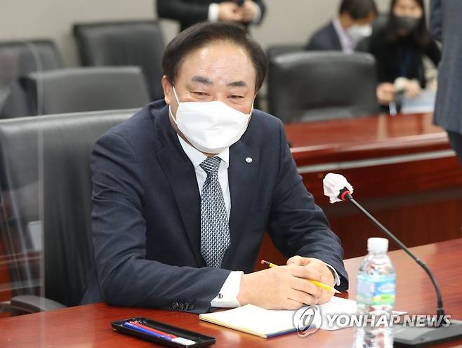 (서울=연합뉴스) 백승렬 기자 = 임준택 수협중앙회장이 11일 정부서울청사에서 열린 국민권익위원회와 유관기관의 청탁금지법 설선물가격 상향에 관한 간담회에서 발언하고 있다. 2021.1.11