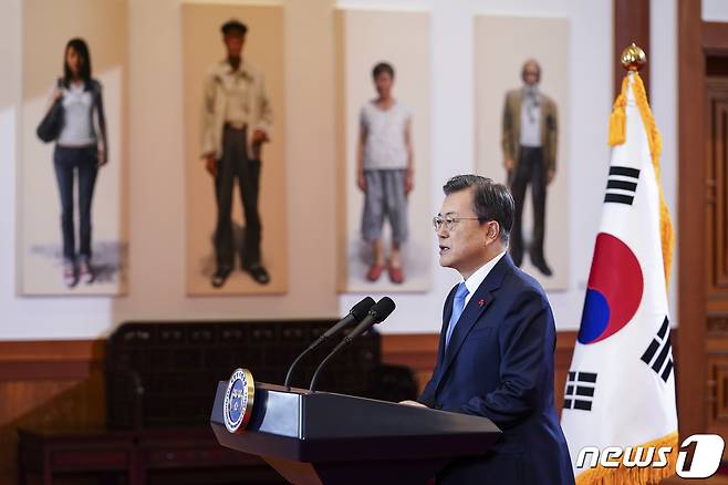 (서울=뉴스1) 이광호 기자 = 문재인 대통령이 11일 오전 청와대 본관에서 새해 국정운영 방향을 담은 신년사를 발표하고 있다. 2021.1.11/뉴스1