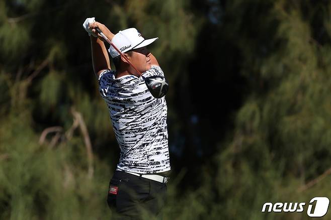 (카팔루아 AFP=뉴스1) 우동명 기자 = 임성재가 10일 (현지시간) 하와이주 마우이 카팔루아의 카팔루아 리조트 플랜테이션코스에서 열린 PGA 투어 왕중왕전인 센트리 토너먼트 오브 챔피언스의 마지막 날 16번 홀서 티샷을 하고 있다.