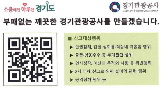 경기관광공사, 반부패 신고체계 강화..익명 신고 시스템 도입 운영