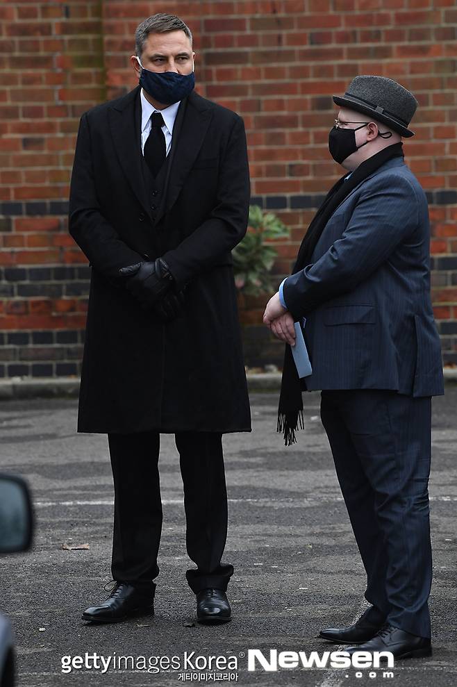 맷 루카스, 데이비드 월리엄스가 2021년 1월 8일(현지시간) 영국 런던의 골더스 그린 화장터에서 엄수된 데임 바바라 윈저의 장례식에 참석했다.