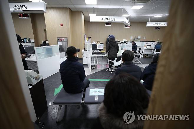 (서울=연합뉴스) 박동주 기자 = 11일 오후 고용노동부 서울남부고용센터에서 시민들이 실업급여 수급자격 신청 등을 위해 대기하고 있다.