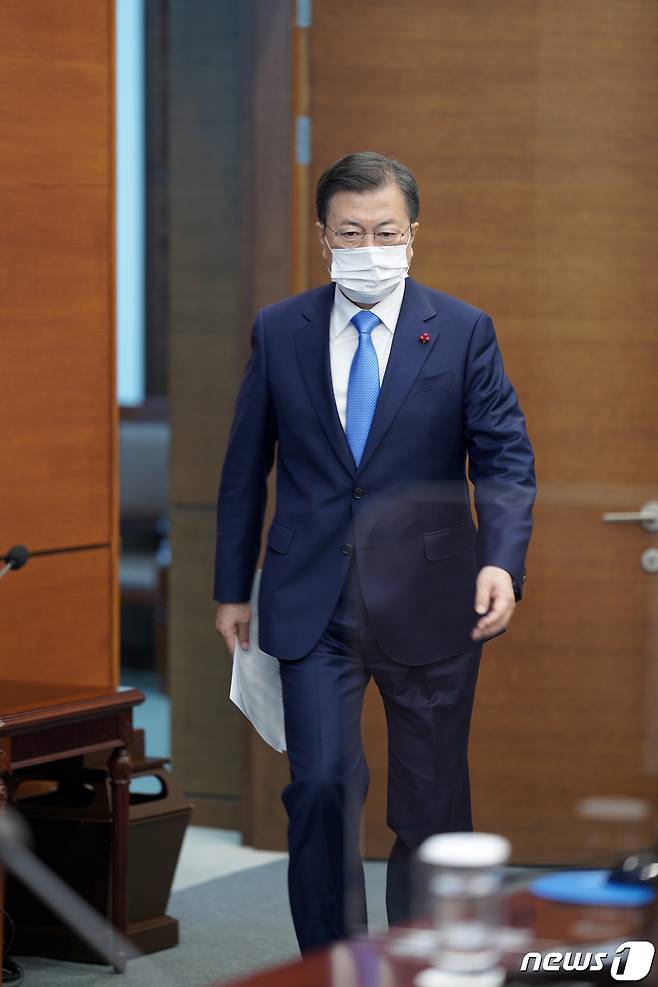 (서울=뉴스1) = 문재인 대통령이 11일 오후 청와대 여민관에서 열린 수석·보좌관회의에 참석하고 있다.(청와대 제공) 2021.1.11/뉴스1