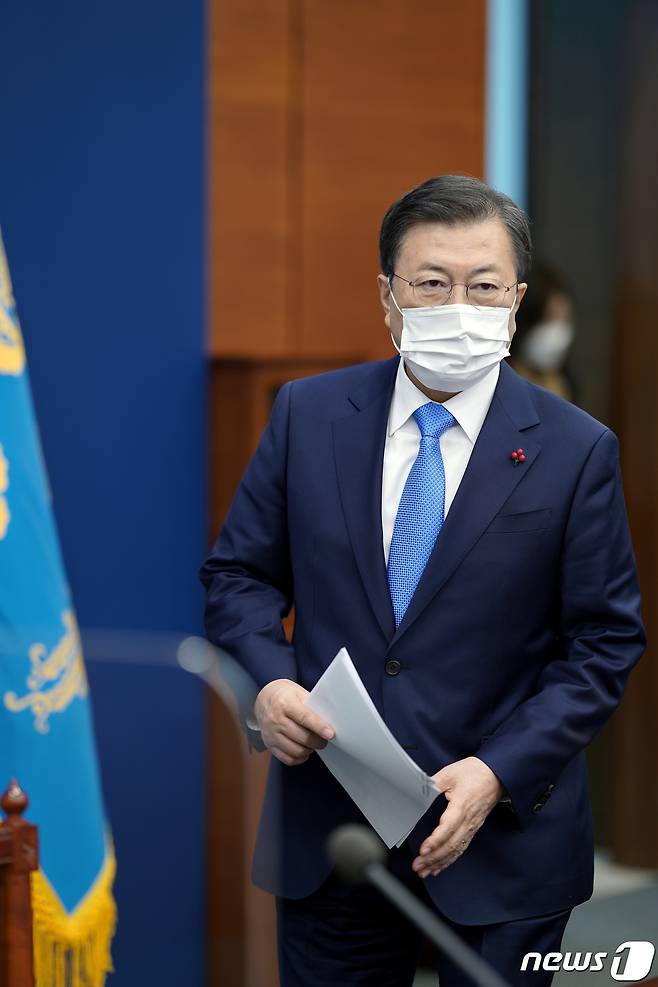 (서울=뉴스1) = 문재인 대통령이 11일 오후 청와대 여민관에서 열린 수석·보좌관회의에 참석하고 있다.(청와대 제공) 2021.1.11/뉴스1