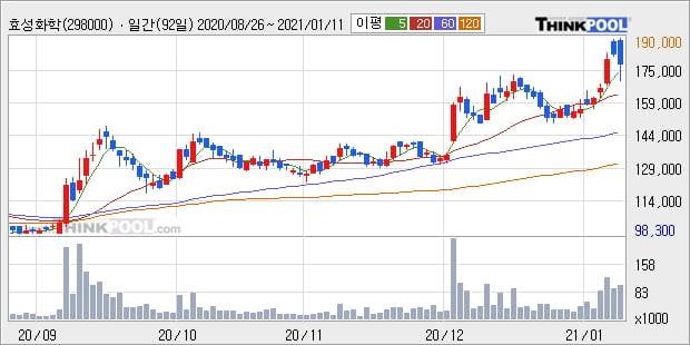 '효성화학' 52주 신고가 경신, 전일 종가 기준 PER 166.4배, PBR 1.3배, 업종대비 저PER