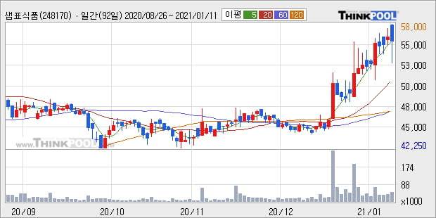 '샘표식품' 52주 신고가 경신, 전일 종가 기준 PER 6.8배, PBR 1.4배, 업종대비 저PER
