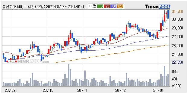 '풍산' 52주 신고가 경신, 전일 종가 기준 PER 19.0배, PBR 0.6배, 업종대비 저PER