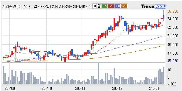 '신영증권' 52주 신고가 경신, 단기·중기 이평선 정배열로 상승세