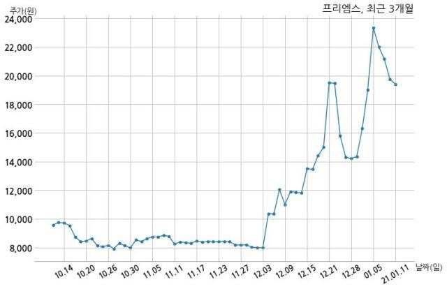 한편, 프리엠스는 장 마감 이후 해당 기업공시를 발표했으며 오늘 종가가 19,400원, 거래량은 311,607주로, 직전 거래일 대비 350원(-1.77%) 하락했다.