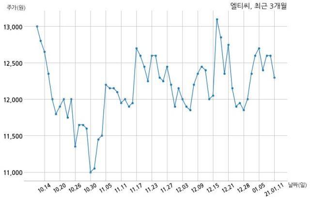 한편, 엘티씨는 장 마감 이후 해당 기업공시를 발표했으며 오늘 종가가 12,300원, 거래량은 186,580주로, 직전 거래일 대비 300원(-2.38%) 하락했다.