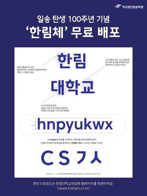 학교법인 일송학원은 11일 '한림체' 서체를 공개하고 무료로 배포했다.