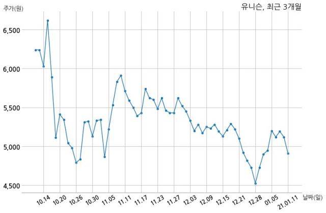 한편, 유니슨은 장 마감 이후 해당 기업공시를 발표했으며 오늘 종가가 4,910원, 거래량은 4,013,598주로, 직전 거래일 대비 210원(-4.1%) 하락했다.