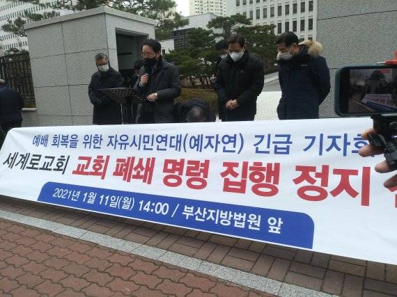 '대면 예배'를 강행해 특별방역대책에 위반했다는 이유로 부산시 강서구청으로부터 건물 폐쇄조치 명령을 받은 부산 세계로교회 측이 즉각 집행정지 소송을 냈다.