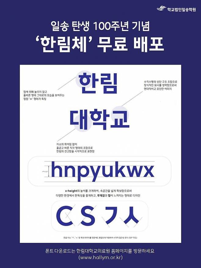 학교법인일송학원이 11일 '한림체' 서체를 공개하고 무료로 배포했다.