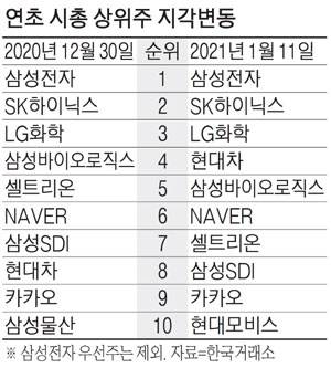 지난해 코로나19 국면에서 성장주 위주로 재편을 거친 시총 상위주 그룹은 올해 순위 싸움을 이어갈 것으로 전망된다.