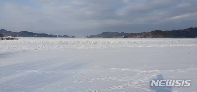 [예산=뉴시스]유효상 기자 = 중부권 최대 호수인 충남 예산군 예당호가 지난 10일 현재 영하 18도의 한파로 꽁꽁 얼어 있다. 2021.01.11 yreporter@newsis.com