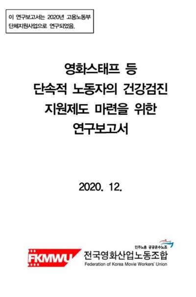 | ▲ '영화스태프 등 단속적 노동자의 건강검진 지원제도 마련을 위한 연구보고서' |