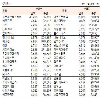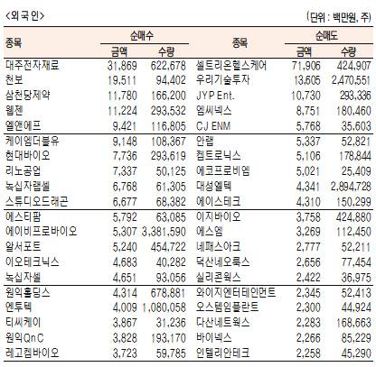 - [표]주간 코스닥 기관·외국인·개인 순매수·도 상위종목(1월 4일~8일)