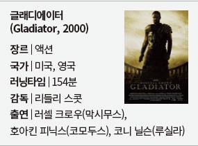 막시무스야말로 영화적 인물이다. 무엇이 팩트이고 어디부터 허구인지 비교해 보는 것은 영화를 더 재미있게 보는 방법이다. 강직한 막시무스는 러셀 크로우가, 불안한 폭군 코모두스는 호아킨 피닉스가 열연했다.