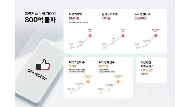 2018년 11월 나온 챌린저스는 지난해 말 기준 누적 거래액 814억원을 달성했다. 2019년말 누적 240억원 대비 3.4배 성장한 셈이다. 챌린저스의 누적 가입자수는 51만명으로, 이용자들이 개설한 챌린지수가 지금까지 5만5800여개에 달한다.