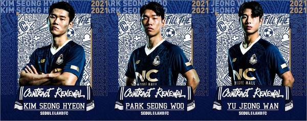 서울이랜드가 김성현, 박성우, 유정완과 계약을 1년 연장했다.