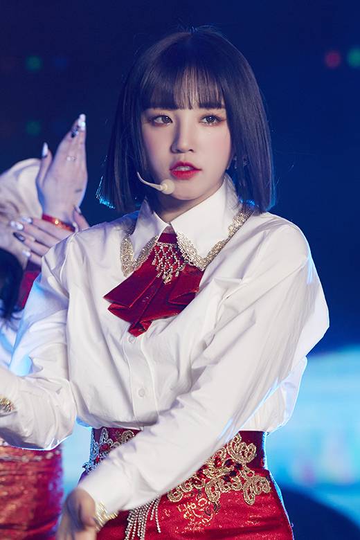 [마이데일리 = 유진형 기자] 여자아이들 우기가 11일 오후 온라인으로 진행된 여자아이들 미니 4집 '아이 번(I burn)' 발매 기념 쇼케이스에서 노래하고 있다.