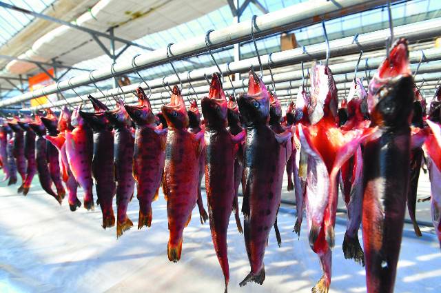 11월 강원 화천군의 비닐하우스에서 반건조 상품으로 판매될 산천어 건조작업이 진행되고 있다.
