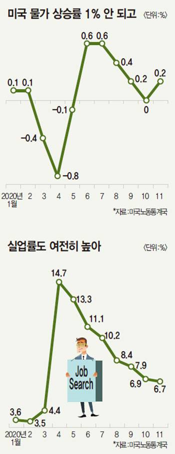그는 이어 “그간 저물가를 유지시켜 온 구조적 요인이 있어 지켜봐야 한다”고 했다. 온라인 쇼핑 활성화로 상품 가격이 지속 하락하는 ‘아마존 효과’가 대표적이다. 경기가 회복돼도 고용 시장이 과연 코로나19 사태 이전 수준까지 빠르게 정상화될 것인지도 의문이다. 그는 “고용이 회복되지 않으면 수요가 지속 증가하기는 어렵다”고 강조했다.
