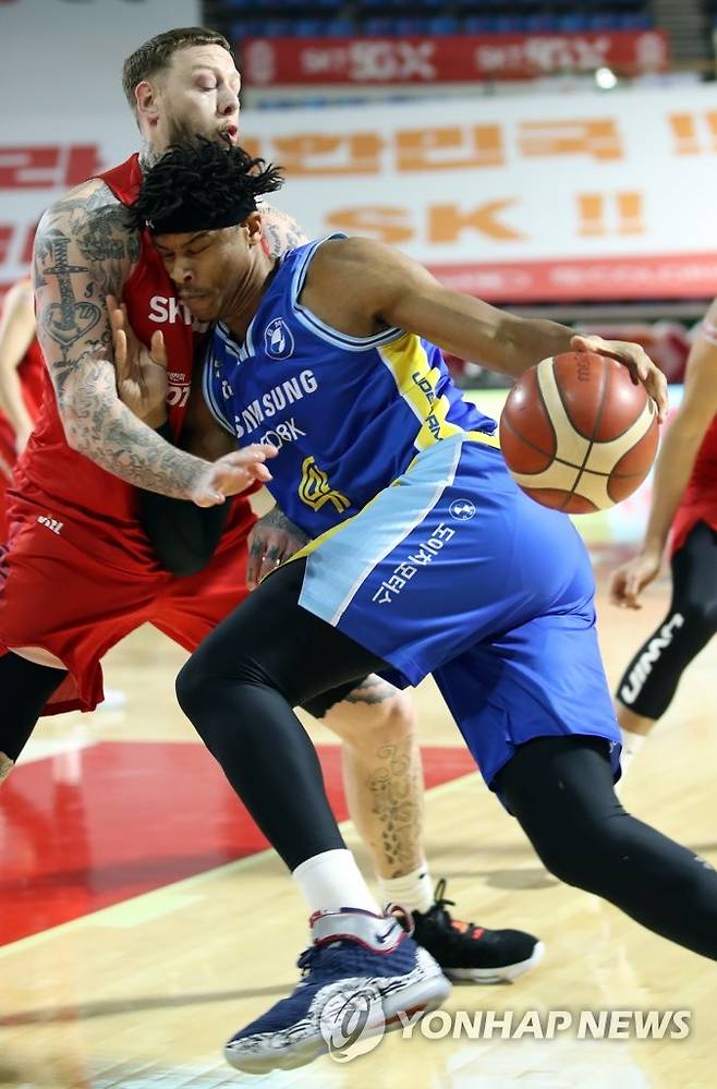 (서울=연합뉴스) 임헌정 기자 = 11일 서울 송파구 잠실학생체육관에서 열린 2020-2021 프로농구 SK 대 삼성 경기.