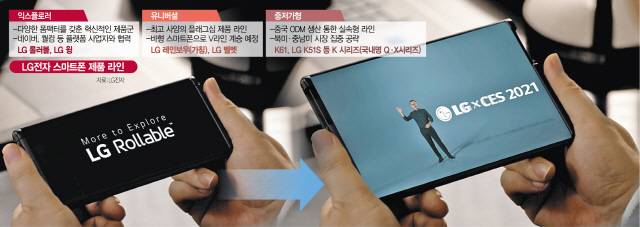 다만 지난해 전격적으로 출시되며 기대를 모은 LG 윙이 별다른 성과를 내지 못하면서 롤러블과 레인보우를 비롯한 프리미엄 및 플래그십 라인에서의 매출 개선이 시급하다는 지적이 계속되고 있다. 전략 스마트폰 중 하나인 LG 롤러블에 기대가 쏠리는 까닭이기도 하다. LG 스마트폰(MC) 사업부는 지난해 4·4분기까지 23분기 연속 적자를 기록할 것으로 전망된다. LG전자 관계자는 “ODM으로 원가 절감을 이룬 데 더해 익스플로러 및 유니버셜 라인의 프리미엄 스마트폰으로 시장을 공략할 것”이라고 말했다. /오지현기자 ohjh@sedaily.com